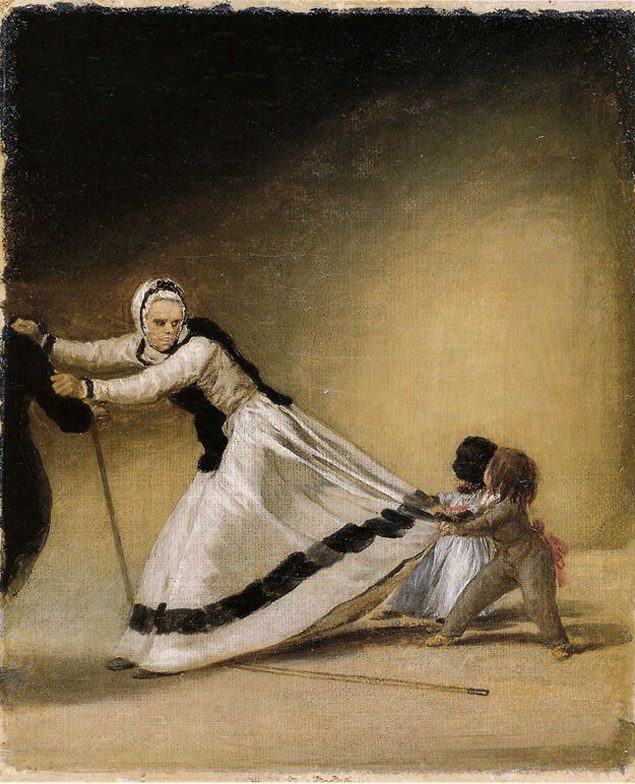 This painting reimagines a humorous domestic scene Goya is believed to have witnessed firsthand while staying at the palace of María Cayetana de Silva, the 13th Duchess of Alba—one of the most powerful and wealthy women in 18th-century Spain, and a close companion of the artist.